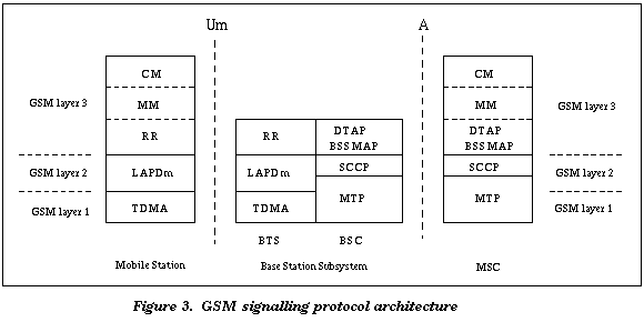 The signalling protocol in GSM is structured in three layers [Rah93, Aud88],