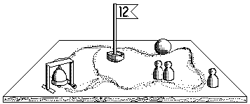 The table is similar to the artificial landscapes used for train models. People who buy this kind of clock are encouraged to build models of their everyday situations. The globe that rolls through them suggests stability, completion of planned tasks.